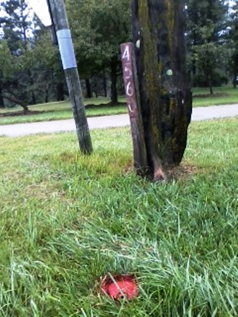 Located in the meadow east of our house. I painted it bright orange to make it easy to see.