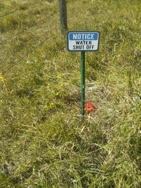 50 Paces from back of house to the West in the pasture. Requires shut-off tool.