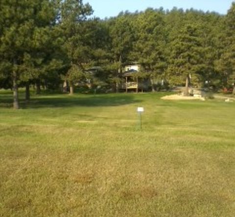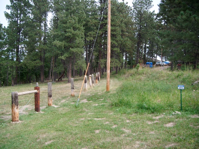 The stop is 18′ from the right gate support (as you look into the field), direction toward the pathfinder circle. It is surrounded by rocks so it is readily identified.