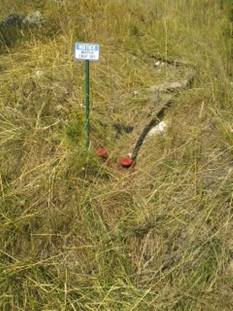 There are 4 shut offs by the Cougar Court pump house. Water to site is shut off closest to pump house, Shut off on right is to Bob Burgard’s at 9630 Cougar Court. The middle one is Bob Thompson at 9490 Cougar Court. The left one is Perry Bushby at 9495 Cougar Court.
